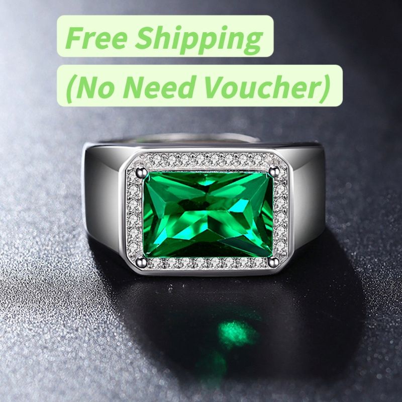 Free Shipping Ready Stock Men Ring 925 Silver Big Diamond Man Adjustable Cincin Lelaki Hijau Biru Permata Besar Kahwin Shopee Malaysia